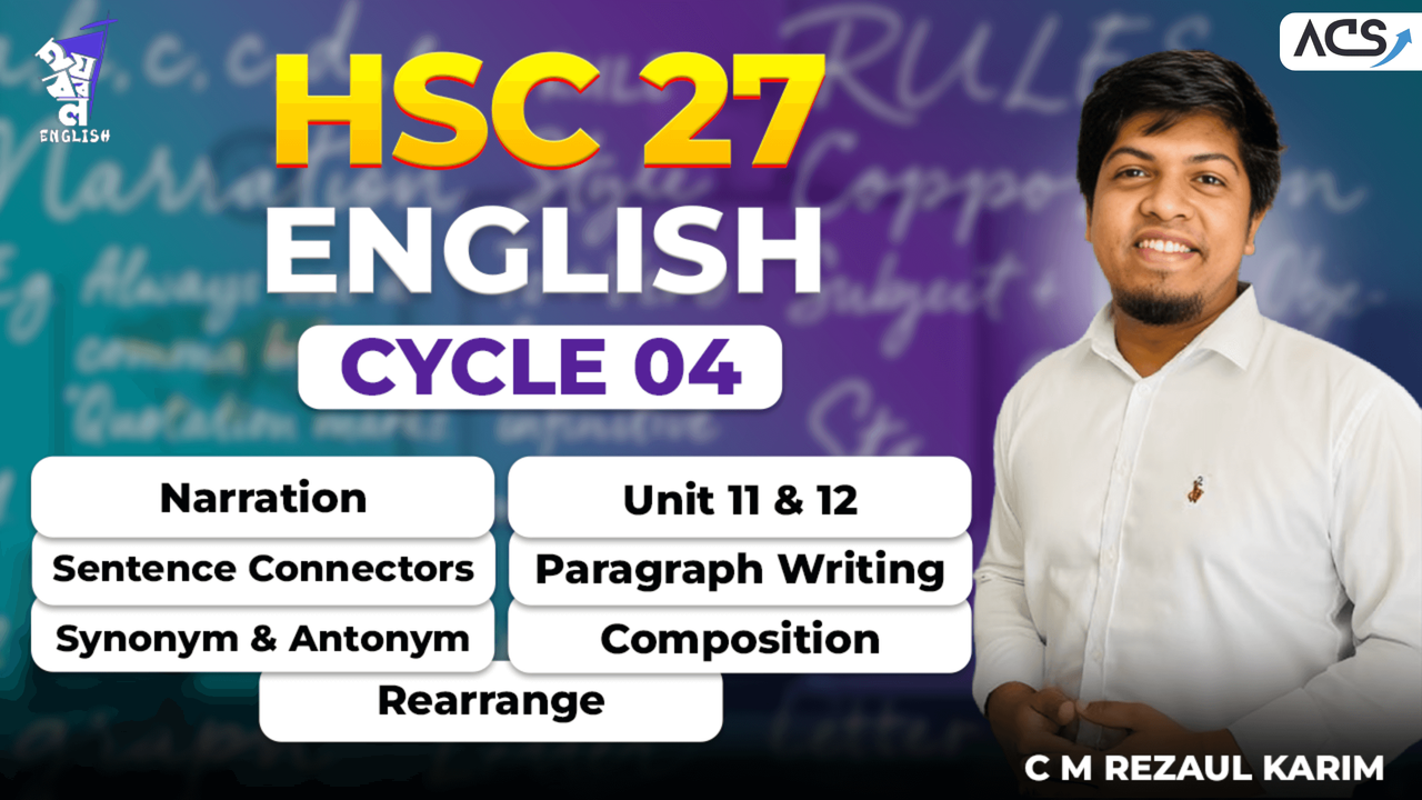 এইচ.এস.সি. ২০২৭ ব্যাচ এর শিক্ষার্থীরা, তোমাদের HSC এর English এর Journey টা Smooth করতে ACS HSC 27 English A to Z এই Batch টি নিয়ে এসেছি। এই ব্যাচে থাকবে ৪ টা Cycle।